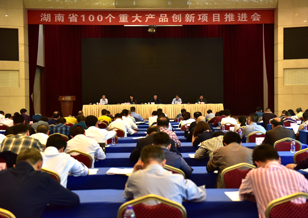2018年4月20日,湖南省100个重大产品创新项目推进会在长沙湖南宾馆召开。省经信委总工程师黄学工出席大会并做动员讲话,省发改委、省农委主管部门和省经信委相关处室负责人,各市州经信委科技工作负责人和110个重大产品创新项目承担企业负责人共170余人参加会议。