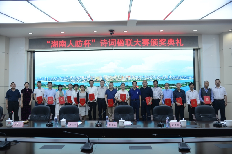 5月8日,由省人防办主办、省诗词协会承办的“湖南人防杯”诗词楹联大赛颁奖典礼在长沙举行。省人防办领导、机关全体人员及直属单位部分人员,省诗词协会部分领导,来自全国各地的获奖者、省内外诗人以及新闻媒体记者出席颁奖仪式。省人防办党组书记、主任王志刚,中华诗词学会副会长、省诗词协会会长彭崇谷代表主办和承办方致辞。