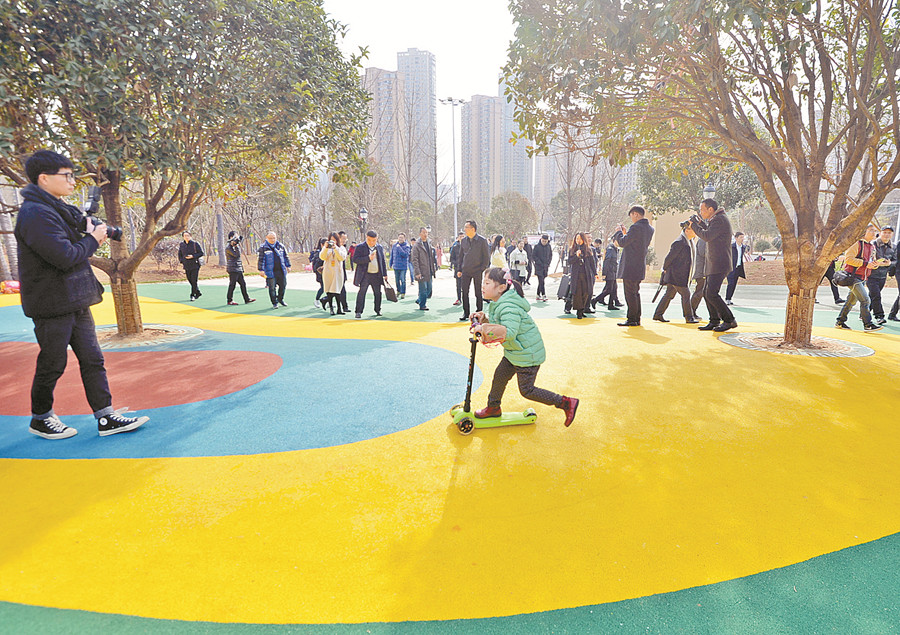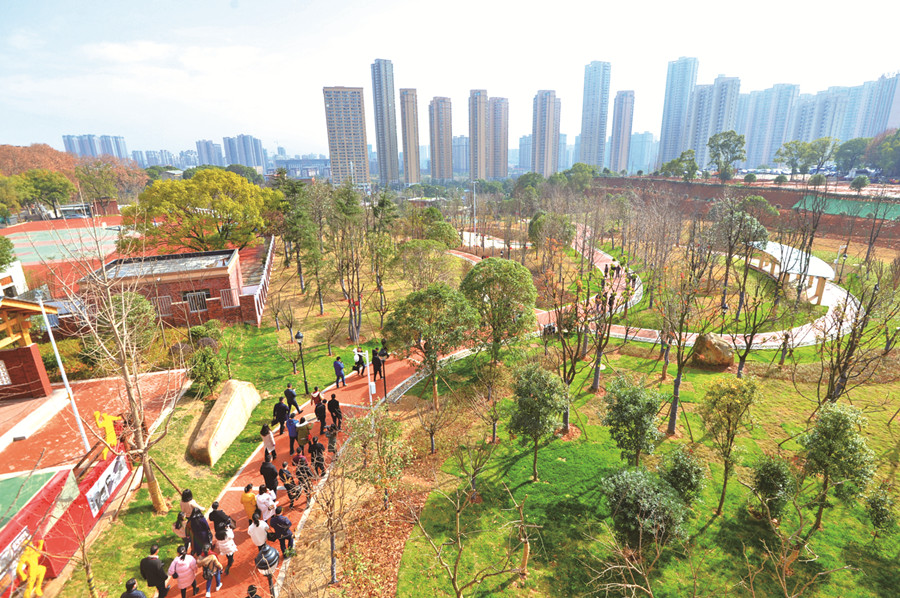 1月11日,提质改造后的长沙市雨花区井巷社区休闲文化公园,居民在休闲游玩。该社区是雨花区全面提质提档示范社区,增加了绿化、休闲场所及停车位等,让居民“开门见绿、推窗见景、百米见园”。 湖南日报记者 李健 摄