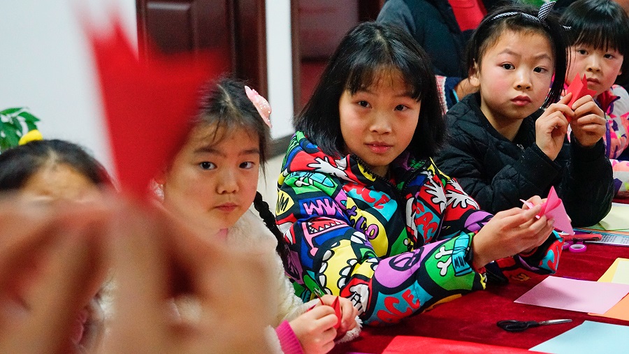 2月8日,小朋友在学习剪纸。当天,长沙市芙蓉区韭菜园街道八一桥社区举行“巧手剪彩纸,欢乐迎新年”活动,让居民感受剪纸艺术的独特魅力,欢乐迎新年。湖南日报记者 徐行 通讯员 旷丽君 摄影报道
