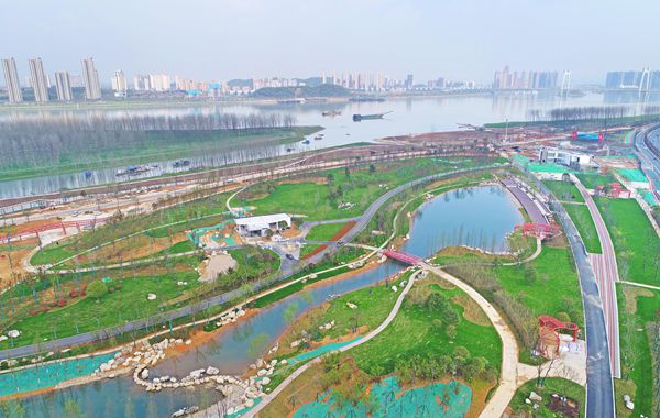 3月26日,绿水环绕、生态宜人的长沙银星湾公园,目前正在进行扫尾施工。银星湾公园位于潇湘北路三汊矶大桥北,总面积约780亩(含460亩湘江滩涂),是集休闲、生态、文化和科普多功能为一体的城市公园,预计6月建成投用。 湖南日报记者 李健 摄