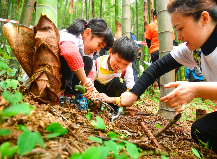 4月15日,小朋友和家长齐心协力挖春笋。当天,长沙市望城区在乌山省级森林公园举办“山水黄金园 笋间亲子乐”活动,吸引了市区100组亲子家庭参与,感受淳朴田园休闲生活。湖南日报记者 唐俊 摄