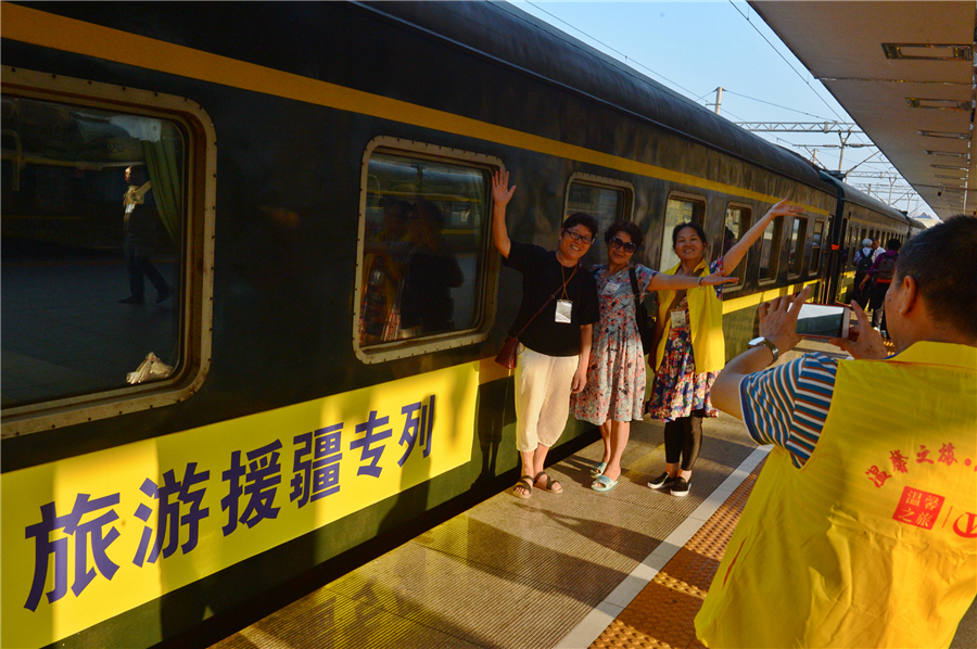 5月16日,2018年“天山梦·湘吐情”湖南人游吐鲁番旅游推介会暨“湘疆号”旅游援疆专列启动仪式在长沙举行。当天下午,湖南首趟“湘疆号”旅游援疆专列从衡阳首发,输送738名湖南游客赴吐鲁番旅游。