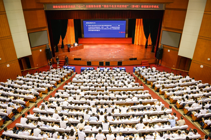 7月1日,湖南省国资委党员及国有企业党支部书记在上党课。当天,湖南省国资委系统庆“七一”主题报告会暨“国企千名支书进党校”第4期培训班开学典礼在省委党校大礼堂举行。会议重温党的光辉历史,引导国资委系统党员干部坚定理想信念,进一步提升干事创业精气神,推动国有企业做强做优做大。