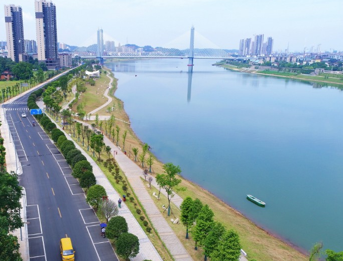 7月28日,资水南岸益阳龙洲广场段,升级打造的资江风貌带郁郁葱葱。2016年以来,益阳市完成了资江风貌带12.3公里提质建设,防洪大堤得到进一步加固,城市吸水、蓄水、渗水、净水功能得到增强,实现了防洪功能与景观功能的有机结合。湖南日报记者 徐行 摄