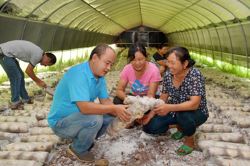 8月26日,永顺县芙蓉镇响塘村香花菌生产基地大棚,技术人员在指导村民培育香花菌。2015年,省农科院对口扶贫响塘村以来,带领村民发展猕猴桃、白皮柚、香花菌等产业,助力农民增产增收脱贫致富。湖南日报记者 郭立亮 通讯员 孟春绒 摄影报道