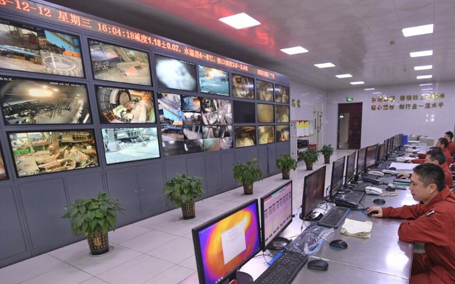 12月12日,华菱涟钢8号高炉操作人员坐在宽敞明亮的控制室工作,根据屏幕显示的各项参数,及时调整操作,确保高炉稳顺运行。