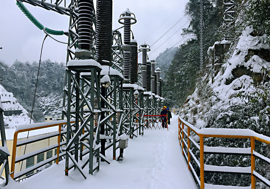1月17日,大雪过后,国网湖南省电力有限公司柘溪电厂运维人员立即行动,对全厂设备进行全面的巡查,确保设备安全运行,保障电网安全和电力供应。郑叶飞 薛雨风 摄影报道