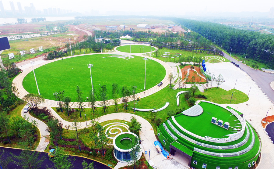 5月27日,长沙月亮岛入岛广场主体工程已完工,呈现一派郁郁葱葱的怡人景象。该广场位于月亮岛内普瑞大道岛桥东头,项目总用地面积约7万平方米,于去年7月动工,主要建设内容包括园区景观绿化工程、公园小品设施工程、景观照明工程等。目前已进入扫尾施工及游乐设施安装阶段,预计年底全面建成。湖南日报记者 田超 摄
