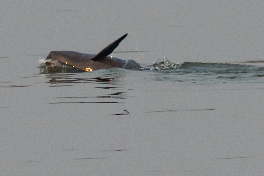 下图:10月4日,岳阳市君山区林阁佬巡护监测点,江豚跃出水面。