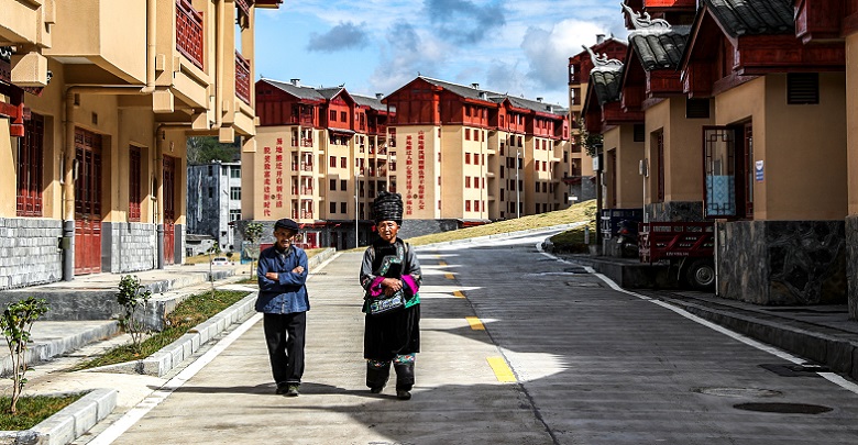 11月4日,易地搬迁户走在整洁的凤凰县禾库安置区内。禾库安置区是湖南省最大的易地扶贫搬迁安置区,安置建档立卡贫困户942户4778人,安置区还配套建设幼儿园、卫生院、服务中心、文化广场、停车场等设施。后续扶持产业方面按照“农民变工人、村民变居民”的思路,同步配套建设2万平方米的易扶搬迁产业孵化园和3800平方米的“扶贫车间”,就近提供就业岗位。石林荣 摄