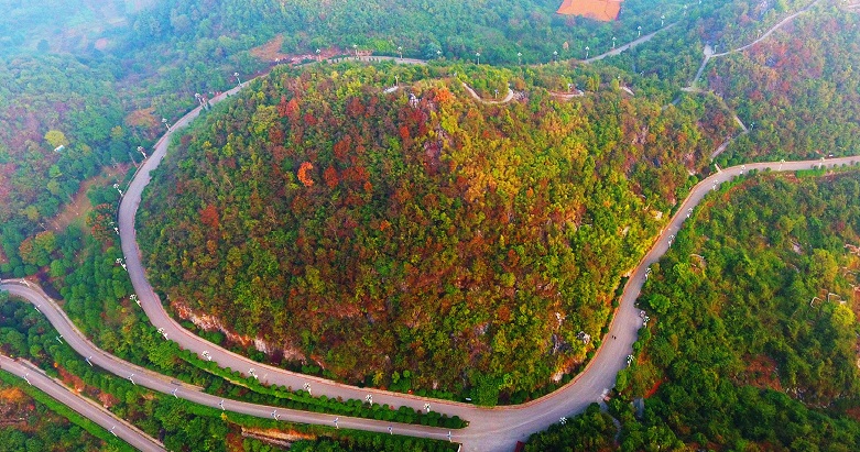 11月5日,嘉禾县九老峰景区层林尽染。深秋时节,该景区漫山遍野的绿林、红叶与蜿蜒的盘山公路相互映衬,构成一幅美丽的秋日画卷。黄春涛 黄睿 摄影报道