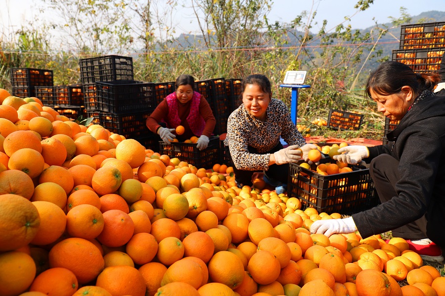 12月6日,辰溪县辰阳镇周家人村脐橙基地,果农在分拣、包装脐橙。该村因地制宜发展脐橙产业,全村种植面积近万亩,亩均收入可望逾5000元,直接带动周边100余名村民就业。近年来,该县大力发展柑橘、黄桃、葡萄等“一村一品”特色产业,帮助群众脱贫增收。杨娟 摄