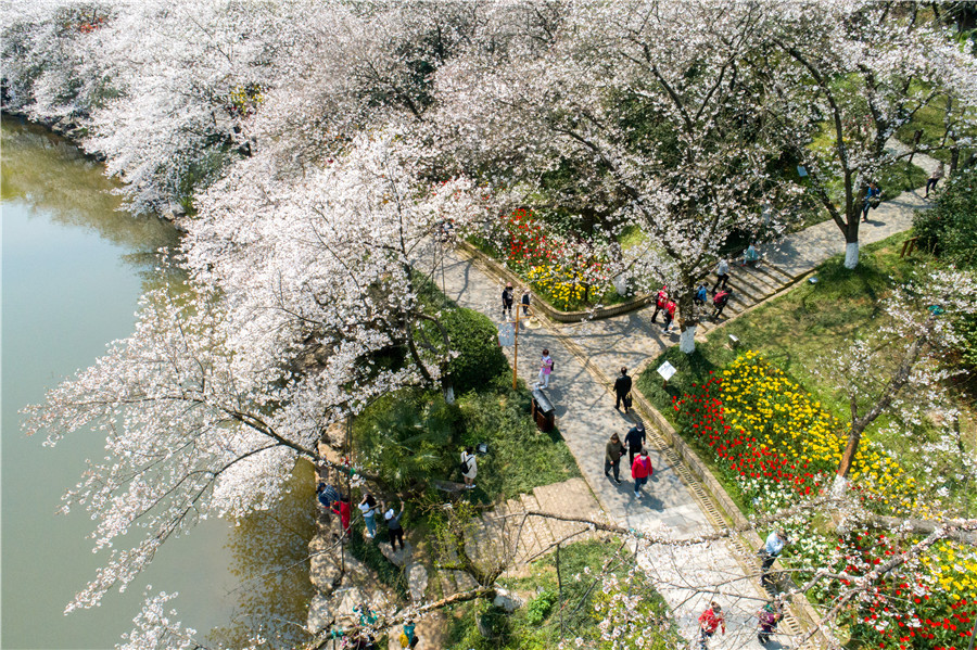 3月19日,湖南省森林植物园,不少游客前来赏樱。近日,该园的樱花盛开,迎来最佳观赏时机,吸引游客慕名而来。湖南日报记者 傅聪 摄