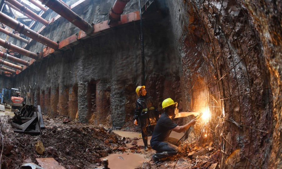 5月6日,长沙市万家丽路快速化改造北延线(含电力隧道)工程1号盾构始发井,中铁五局施工人员在焊接钢筋网片。该工程电力隧道南起特立西路,北至规划信息大道北,全长约7.6km,分盾构段、明挖段两段开挖。目前,盾构段的1号、4号盾构始发井开挖已基本到位。湖南日报记者 田超 摄