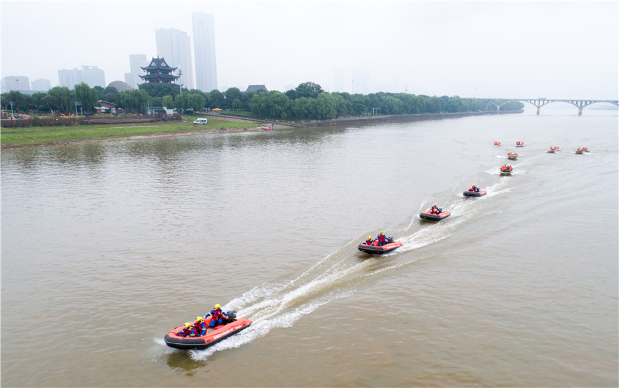 6月3日,湘江长沙橘子洲段,武警长沙支队组织冲锋舟操作手与蓝天救援队展开协同集训。此次集训围绕冲锋舟基本操作、水上搜索、水上救援、长距离泅渡、冲锋舟战斗队形等科目展开训练,为备战汛期高峰打下坚实基础。