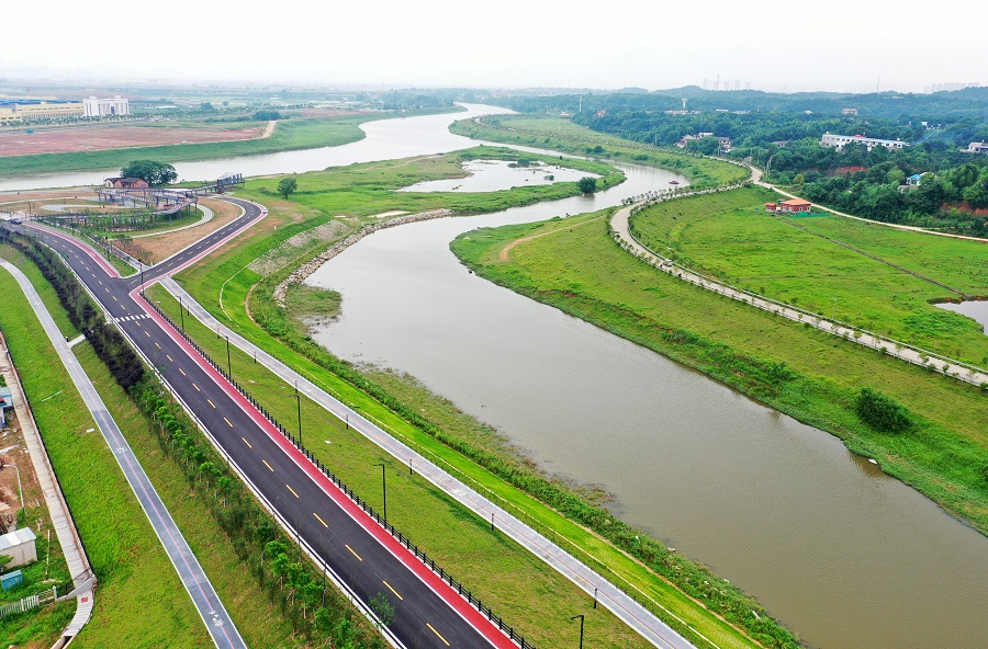 6月9日,长沙县水塘垸(捞刀河与白沙河交汇处西岸),河畅、水清、岸绿。长沙县捞刀河(城区段)水系综合整治项目水塘垸堤防达标工程一期于去年1月动工建设。工程全长3.291千米,其中白沙河堤防2.2千米,捞刀河堤防1.091千米。湖南日报记者 田超 摄