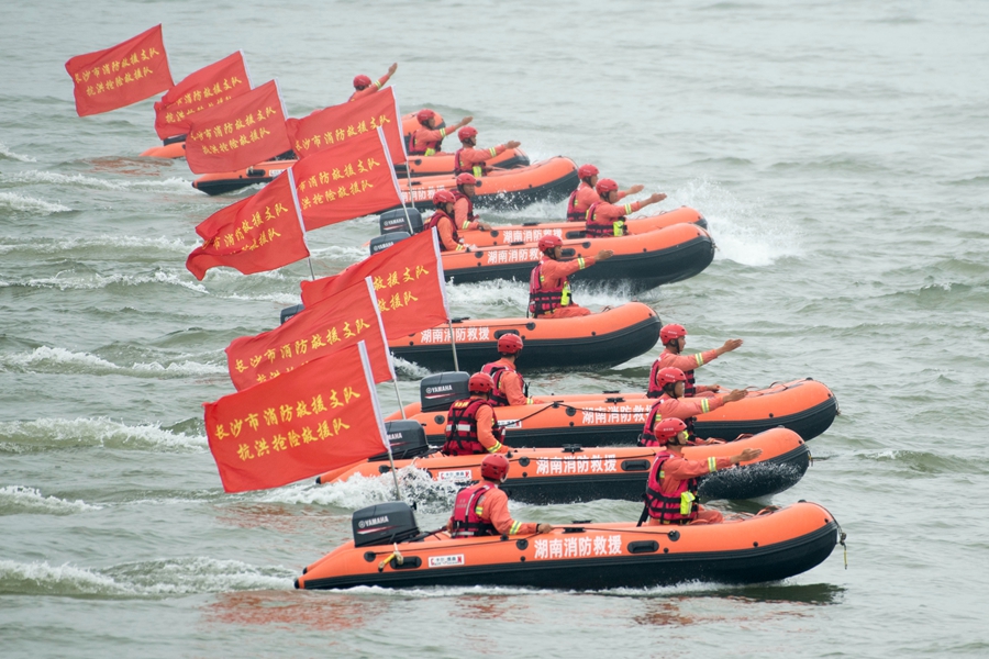 6月20日上午9时30分,“人民至上 生命至上”——湖南省2020年抗洪抢险应急演练在长沙市望城区翻身垸举行。国家综合性消防救援队伍、驻湘部队、医疗救援社会救援力量以及电力通信等保障队伍1800人参与本次演练活动,以实战化状态检验抗洪抢险应急能力。