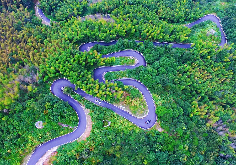 9月11日,汨罗市川山坪镇玉池山村,车辆在竹海山林公路上行进。今年来,该村投入资金700余万元,对村主干道连接玉池山景区约7.5公里的路段进行提质改造,促进玉池山村“文旅+”产业融合发展,带动文化和旅游消费扩容升级。