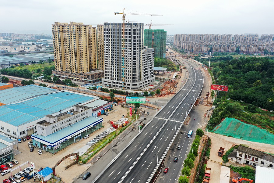 9月20日,芙蓉大道快速化改造项目长沙段(非涉铁段)上跨伊莱克斯大道高架桥,桥面扫尾施工已全部完成,达到通车条件。该桥长317米,宽24米,双向6车道,是非涉铁段关键施工节点之一。芙蓉大道快改项目是长株潭“三干一轨”项目的重要组成部分,预计10月底全线贯通。湖南日报记者 田超 通讯员 向聃 摄影报道