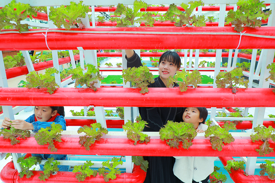 10月5日,永州市仁山湖美田园综合体,游客在现代科技农业种植基地参观。中秋国庆长假期间,该市乡村旅游接待人数同比增长30%左右,成为假日经济新的增长点。 严洁 摄