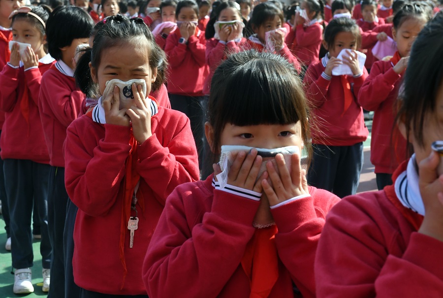 11月9日,学生在进行消防疏散应急演练。当天是全国消防安全宣传教育日,长沙市芙蓉区大同第三小学开展消防演练,旨在增强师生安全意识和提高火场逃生技能。 湖南日报记者 徐行 通讯员 孔亚超 摄影报道