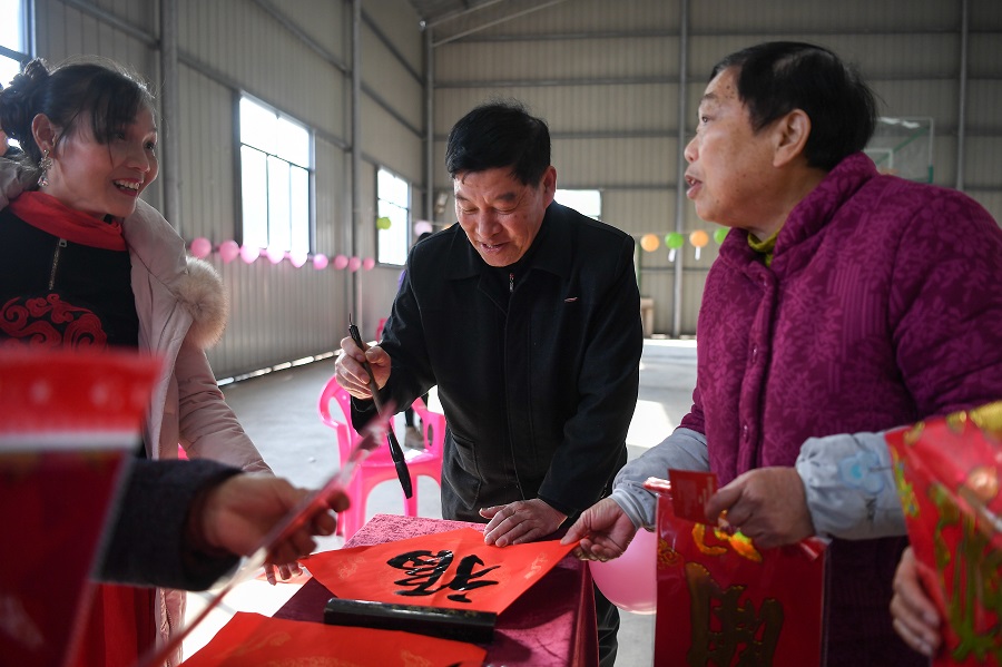 12月30日,社区居民在写福字。当天,长沙市芙蓉区马坡岭街道新安社区举行“金牛闹春送祥福,党群共庆迎新春”游园会活动,社区居民齐聚一堂,开展玩游戏、演节目、写福字等游园项目,喜迎元旦佳节。湖南日报记者 傅聪 通讯员 李芳 摄影报道