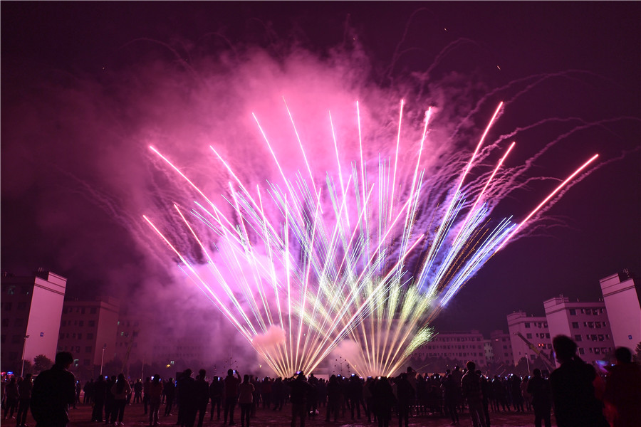 2月11日晚,除夕夜,浏阳经济技术开发区为就地过年员工举办专场焰火晚会,璀璨焰火点亮了园区的夜空,温暖了员工的心。童迪 唐璐 顾荣 摄影报道