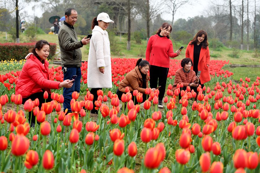 3月9日,长沙园林生态园,市民在参观郁金香花海。近日,该园5万株郁金香进入花期,绘就了一幅色彩斑斓的油画。本月20日至4月20日,园内将举办以郁金香、杜鹃花为主题的2021长沙春季花展暨第五届杜鹃花旅游文化节。 湖南日报·新湖南客户端记者 田超 摄