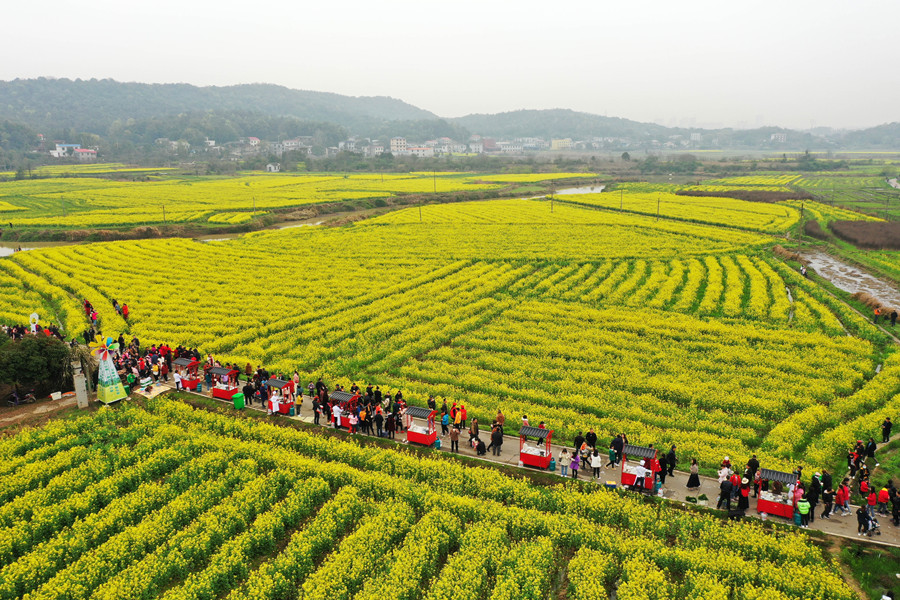 3月13日,长沙市岳麓区含浦街道含泰社区,3000余亩油菜花开,一些游客慕名前来踏青赏花。当天,岳麓区“花开时节·含浦有约”第六届油菜花节开幕,汉服展示、旗袍走秀、含浦美食品鉴等活动同步开展。田超 郑旋 摄影报道