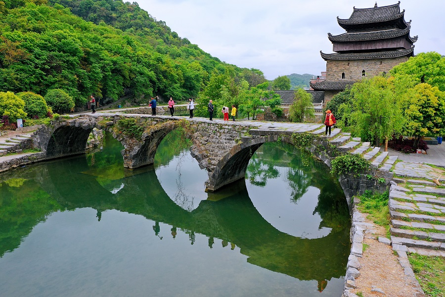 4月6日,江永县下层铺镇上甘棠村,游人从步瀛桥上走过。该村有着1200年历史,至今保存着200多幢明清时期的古民居。近年,该村通过环境整治、保护性开发等措施,留住了乡土古韵,打造成为了生态宜居的美丽乡村。湖南日报·新湖南客户端记者 徐行 摄