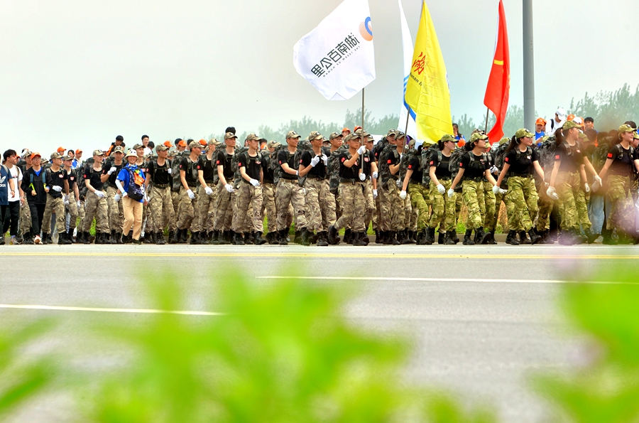 4月17日,湘江沿江风光带,毅行队伍行进在路上。当天,“闪耀的足迹”2021湖南(春季)百公里启动,12000余名毅行者将在2天时间内,沿着湘江徒步穿越长沙、湘潭、株洲三个城市,红色文化与体育精神同频共振,向建党100周年献礼。 湖南日报·新湖南客户端记者 李健 摄