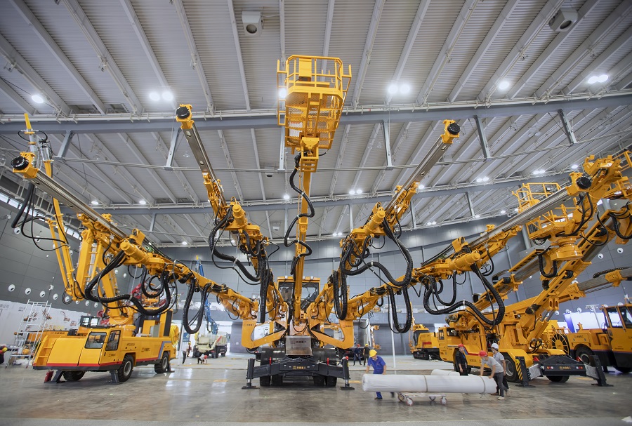 5月18日,长沙国际会展中心,铁建重工展台,大型机械设备已布展到位。5月19日,2021长沙国际工程机械展览会开幕。湖南日报·新湖南客户端记者 辜鹏博 摄