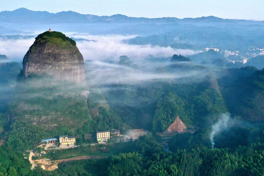 6月8日清晨,通道侗族自治县双江镇桥头村,云雾缥缈,与青山、绿水、道路、侗寨构成一幅多姿多彩的绚丽画卷。近年,该县以绿色发展和生态宜居引领乡村振兴,让农村成为安居乐业的美丽家园。 刘强 申国贵 摄影报道