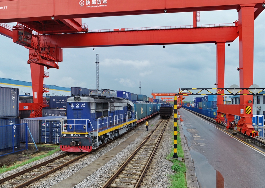 8月13日,X8426次中欧班列从长沙国际铁路港开出。