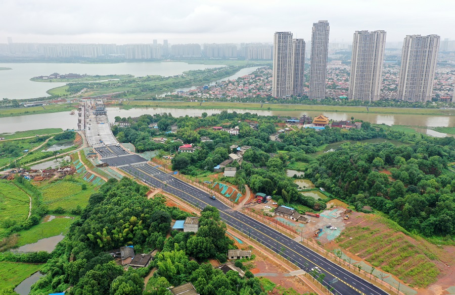 8月25日,长沙县香堤北路捞刀河大桥项目道路工程已竣工。该项目总投资3.68亿元,是长沙县北部新城南北走向的城市主干道,包括桥梁和道路两部分,预计今年11月份通车。湖南日报·新湖南客户端记者 田超 摄