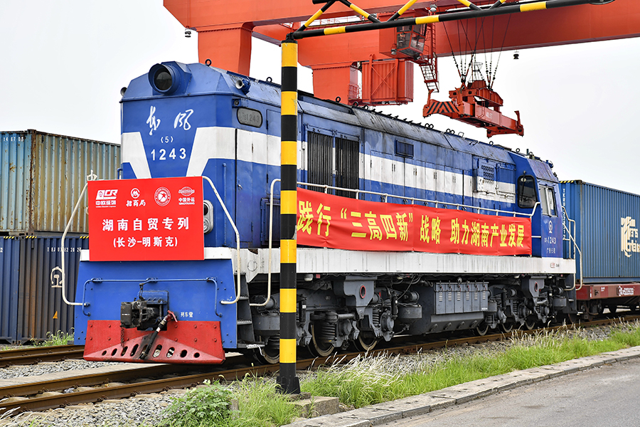 8月26日下午,中欧班列(长沙) 首列湖南自贸专列从广铁集团长沙国际铁路港出发,途经满洲里口岸出境,17天后将抵达明斯克。湖南日报·新湖南客户端记者 童迪 摄