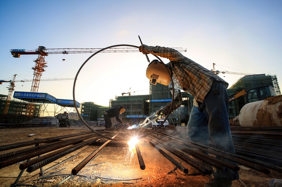10月5日,龙山县第一中学新校建设现场,施工人员正在进行焊接施工。国庆假期,该项目施工人员坚守工作岗位,抢工期、赶进度、保质量,干劲十足。曾祥辉 摄