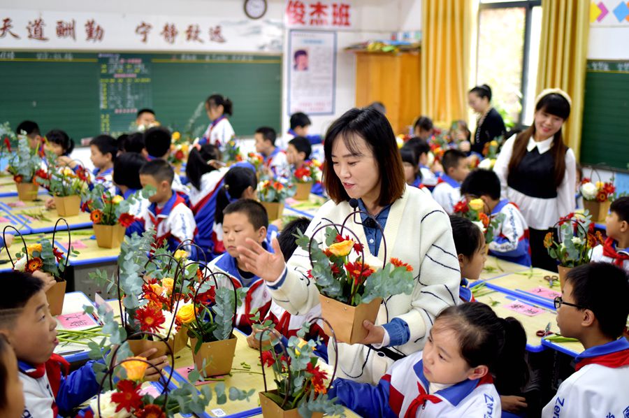 11月1日,老师在讲授插花知识。新学期以来,双峰县曾国藩学校积极落实“双减”政策,在课后开展陶艺、沙画等文体活动和机器人、小小科学家等科技类社团活动,提升学生综合素质,促进学生健康快乐发展。 李建新 张长慧 摄影报道