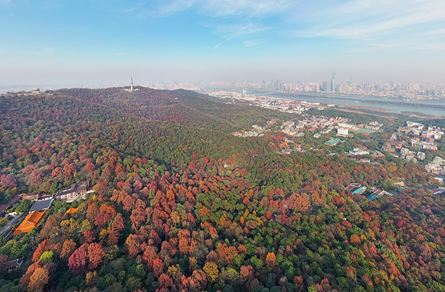 12月3日,长沙市岳麓山上层林尽染、多姿多彩。岳麓山是我国“四大赏枫胜地”之一,这里的红叶以枫香为主,另外还有毛叶枫香、鸡爪槭、日本红枫、北美枫香、元页槭等品种,目前已进入最佳观赏期。湖南日报全媒体记者 李健 摄