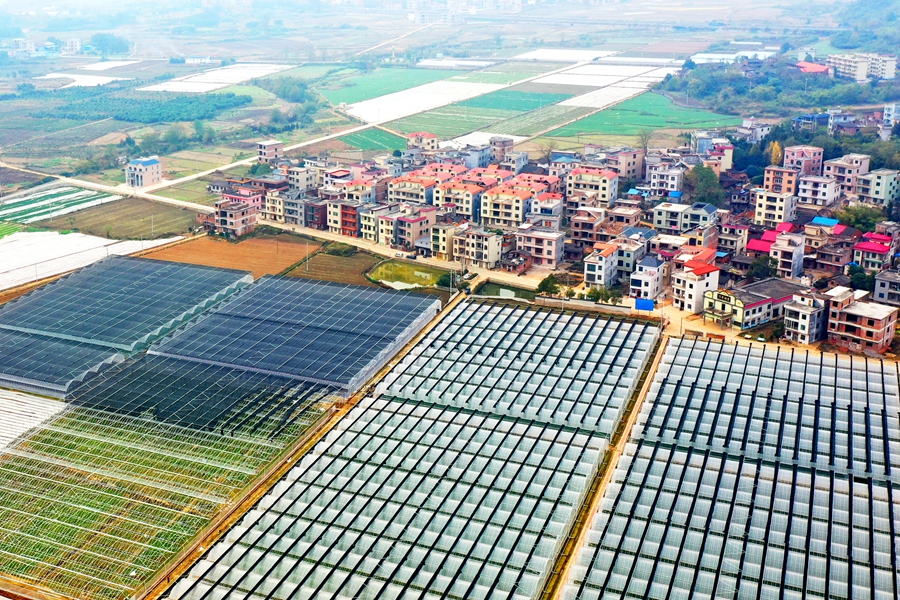 12月16日,嘉禾县晋屏镇生态农业园,蔬菜大棚错落有致。近年,该镇因地制宜,引导农民规模发展蔬菜、果木等产业,实行规范化管理,促进农业增效、农民增收。黄春涛 摄