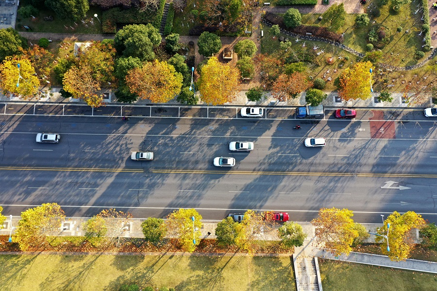 12月21日,长沙市栖凤路,路两旁的梧桐树满树金黄,车辆行驶其间,仿佛置身于一条金光大道。湖南日报全媒体记者田超 摄