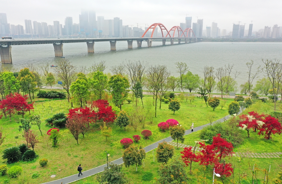 3月20日,长沙市开福区湘江风光带花团锦簇、姹紫嫣红。当天是二十四节气中的春分,星城处处花红柳绿、燕舞莺啼,春意盎然。
