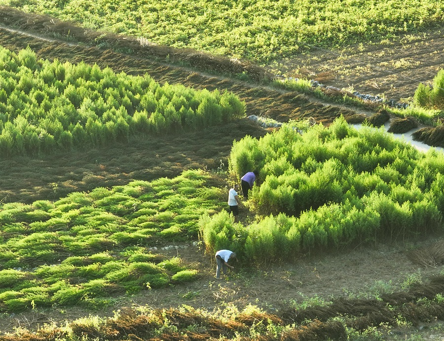 7月27日,道县乐福堂镇清塘坪村,村民在收割青蒿。时下,当地青蒿已进入收割期,村民抢抓农时收割、晾晒。近年,该县采取“公司+合作社+农户”的利益联结机制,带动全县3000户村民积极发展青蒿产业,实现增收致富。蒋克青 王一名 摄影报道