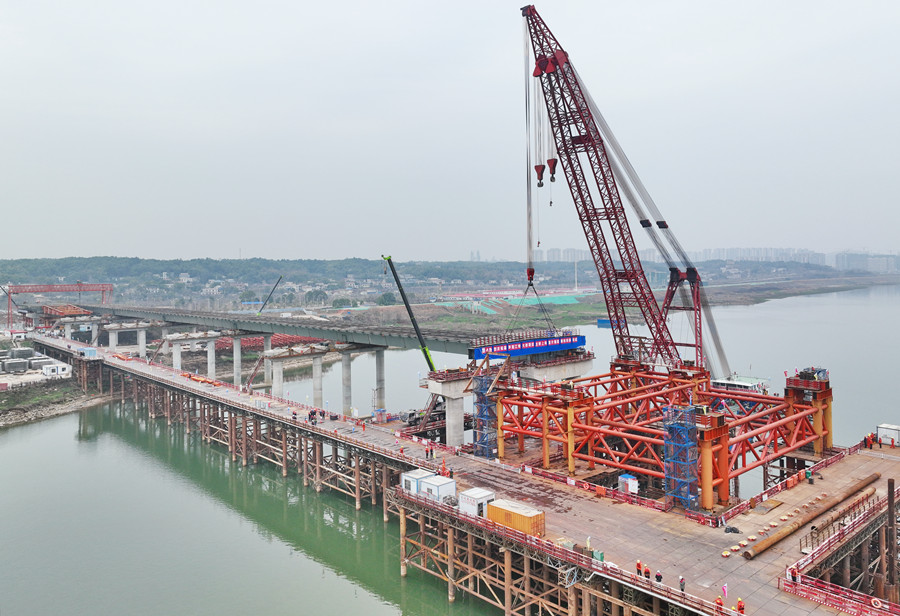 2月20日,长沙暮坪湘江特大桥项目现场,主桥首片钢梁完成吊装,标志着该项目主桥全面进入上构施工阶段。暮坪湘江特大桥是浏阳澄潭江至宁乡沙田公路工程(长沙市南横线)的过江通道,全长约4.416公里,预计2024年底建成。湖南日报全媒体记者 童迪 通讯员 慕强 摄影报道