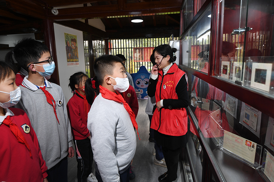 3月1日,长沙市天心阁景区,少先队员在参观展出的雷锋主题藏品。当天,该景区举办的“薪火相传——雷锋精神藏品展”开展。展出的藏品有各个时期雷锋题材图书、邮票、宣传画、幻灯片、明信片等共200余件。 湖南日报全媒体记者 田超 通讯员 唐迪 摄影报道