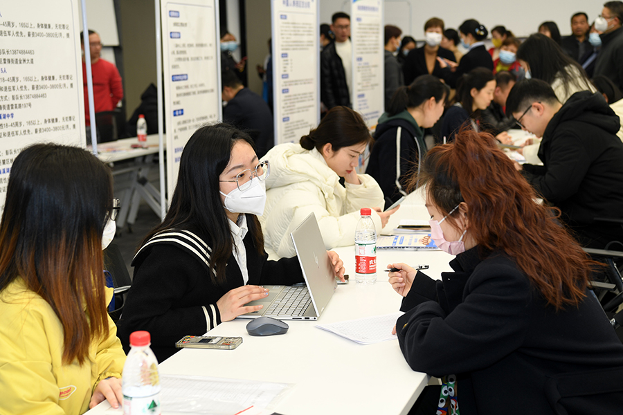 3月2日,湖南湘江新区湘江FFC智慧云大厅,市民在应聘。当天,观沙岭街道举行“春风行动”专场招聘会,辖区40余家企业参加,提供岗位500余个。现场还设立了服务区间,为求职者提供免费公共就业、政策咨询等服务。 湖南日报全媒体记者 田超 通讯员 刘好 摄影报道