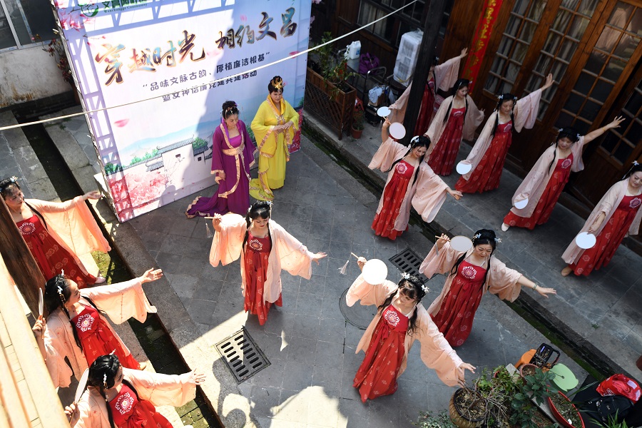 3月6日,长沙市开福区“五进五送”文艺轻骑兵进社区文化惠民活动在文昌阁社区举行,文艺志愿者为居民表演汉服秀。该区目前有80余支文艺轻骑兵小分队共2000余人,他们通过开展丰富多彩的活动,让更多人感受中华优秀传统文化的魅力。湖南日报全媒体记者 田超 通讯员 邱枥娴 摄影报道