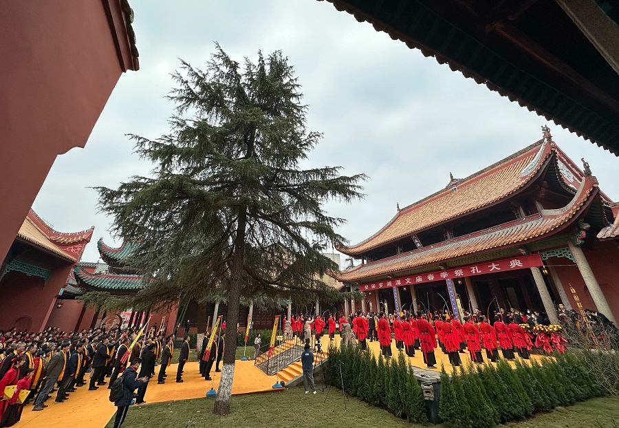 3月30日上午8时18分,昭潭书院的湘潭文庙内礼乐和鸣,湖南科技大学“天开文运 庙学合一”——癸卯岁湘潭文庙春季祭孔大典举行。祭孔大典分为启户、迎神礼、敬献花篮、读祝、初献礼、亚献礼、终献礼、经典诵读、撤馔、送神礼等十个环节。学生们身着古装,完整呈现了祭孔佾舞。湖南日报全媒体记者 徐行 余蓉 摄影报道