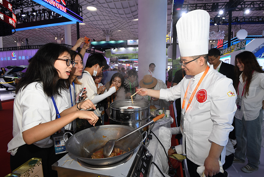 4月10日,第三届中国国际消费品博览会在海南省海口市开幕,湖南食用油企业现场展示茶油做菜引人关注。 湖南日报全媒体记者 田超 彭可心 摄影报道